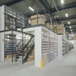 The posts are strong and dimensioned in order to carry the loads from the floor above. Shelving built as multi tier installations is often used in larger warehouses for spare parts or where the storage of many articles is required often with a low turnover.